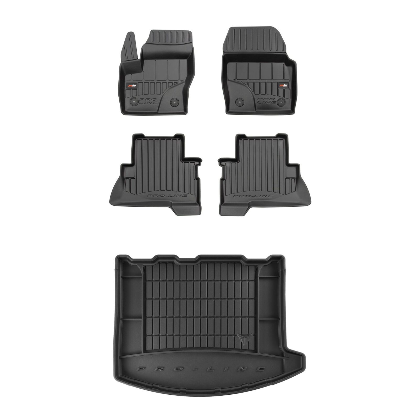 Zestaw dywaników samochodowych i maty do bagażnika ProLine dopasowany do Ford Kuga II (2013-2019, suv, dystans między stoperami 28,1cm, z dojazdowym kołem zapasowym lub zestawem naprawczym)