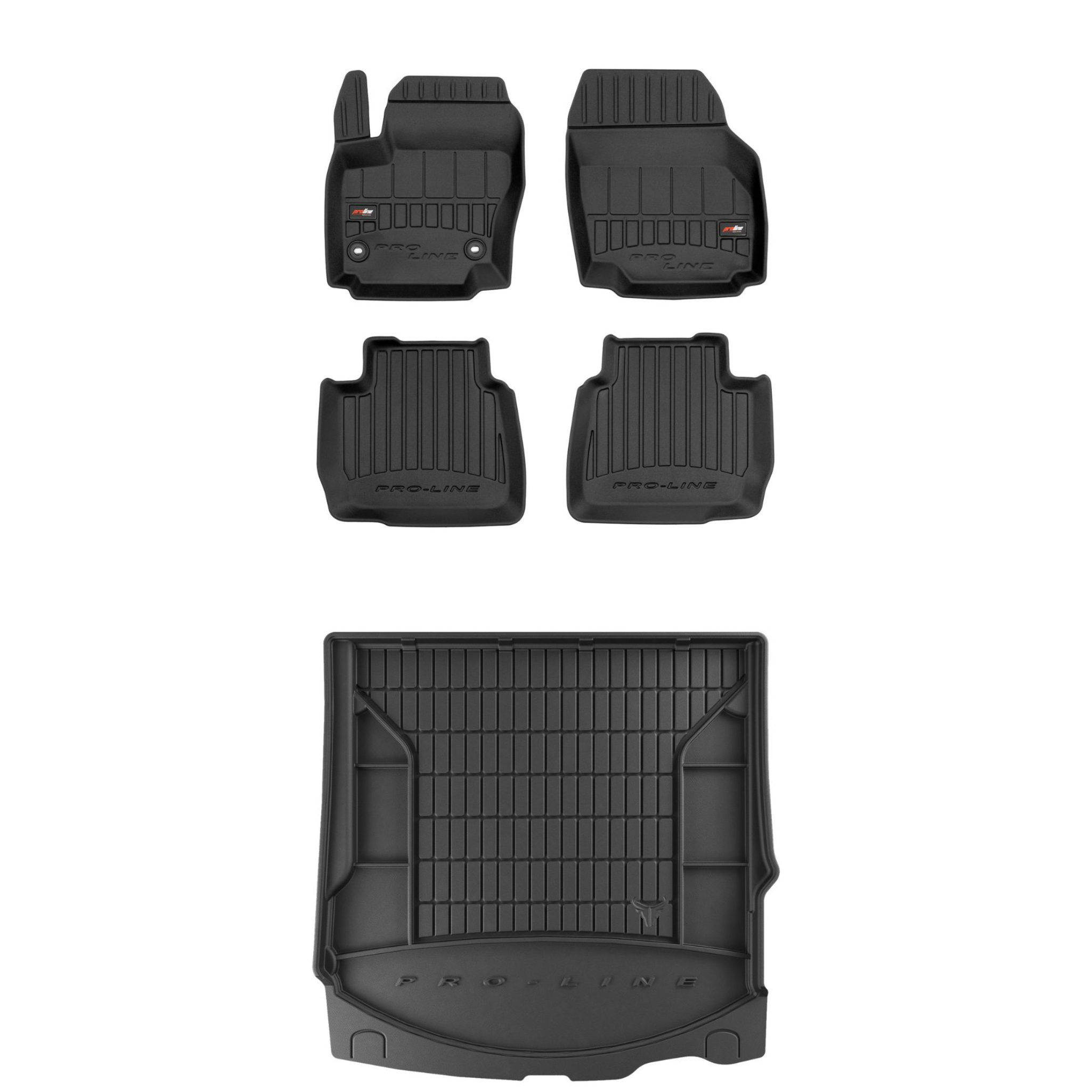 Zestaw dywaników samochodowych i maty do bagażnika ProLine dopasowany do Ford Mondeo IV (2007-2014, dystans między stoperami 31cm, kombi, bez regulowanej wysokości podłogi bagażnika)