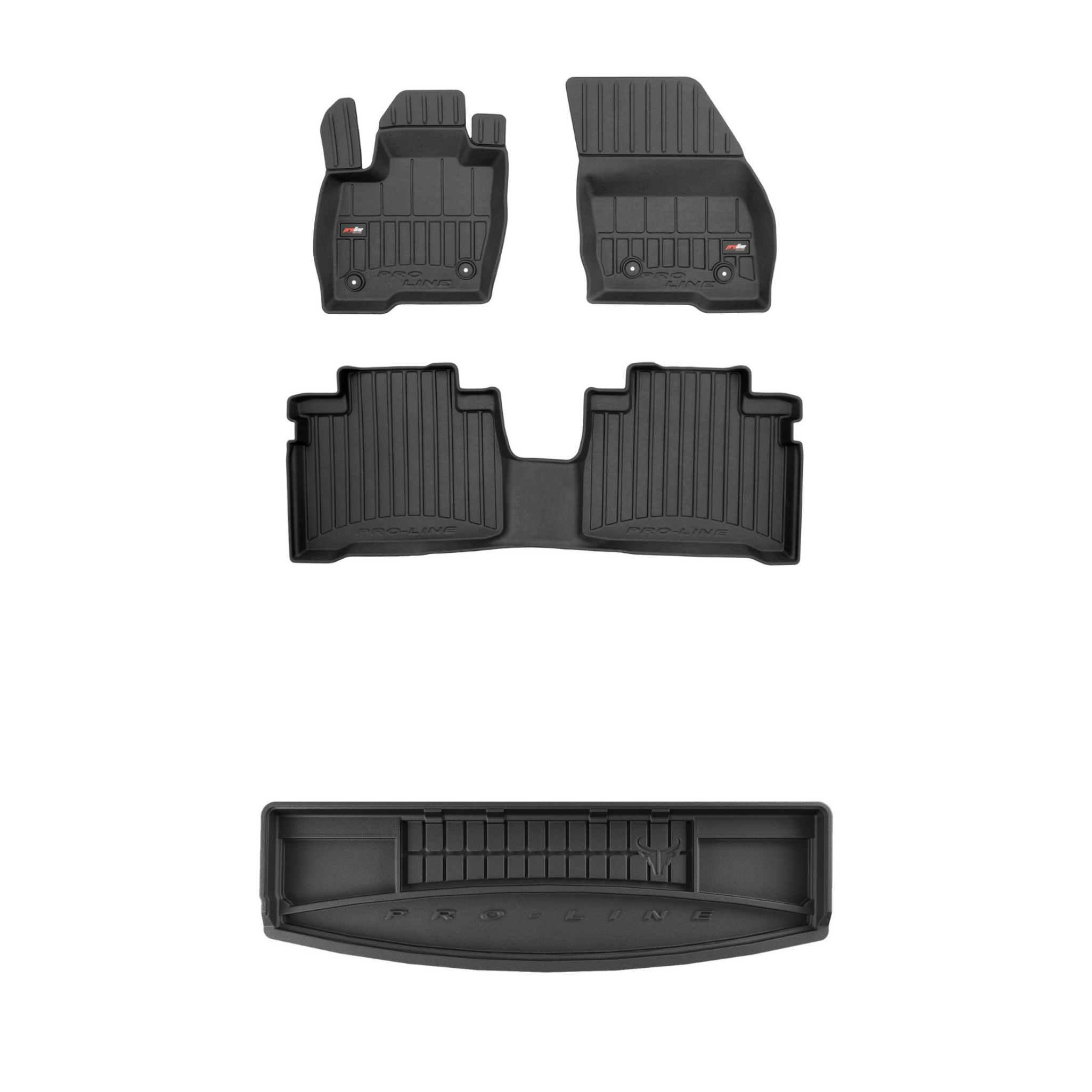 Zestaw dywaników samochodowych i maty do bagażnika ProLine dopasowany do Ford S-Max II (2014-2023, minivan, dystans między stoperami kierowcy 31cm, pasażera 25cm, 7 miejsc, rozłożony 3. rząd siedzeń, bez regulowanej wysokości podłogi bagażnika)