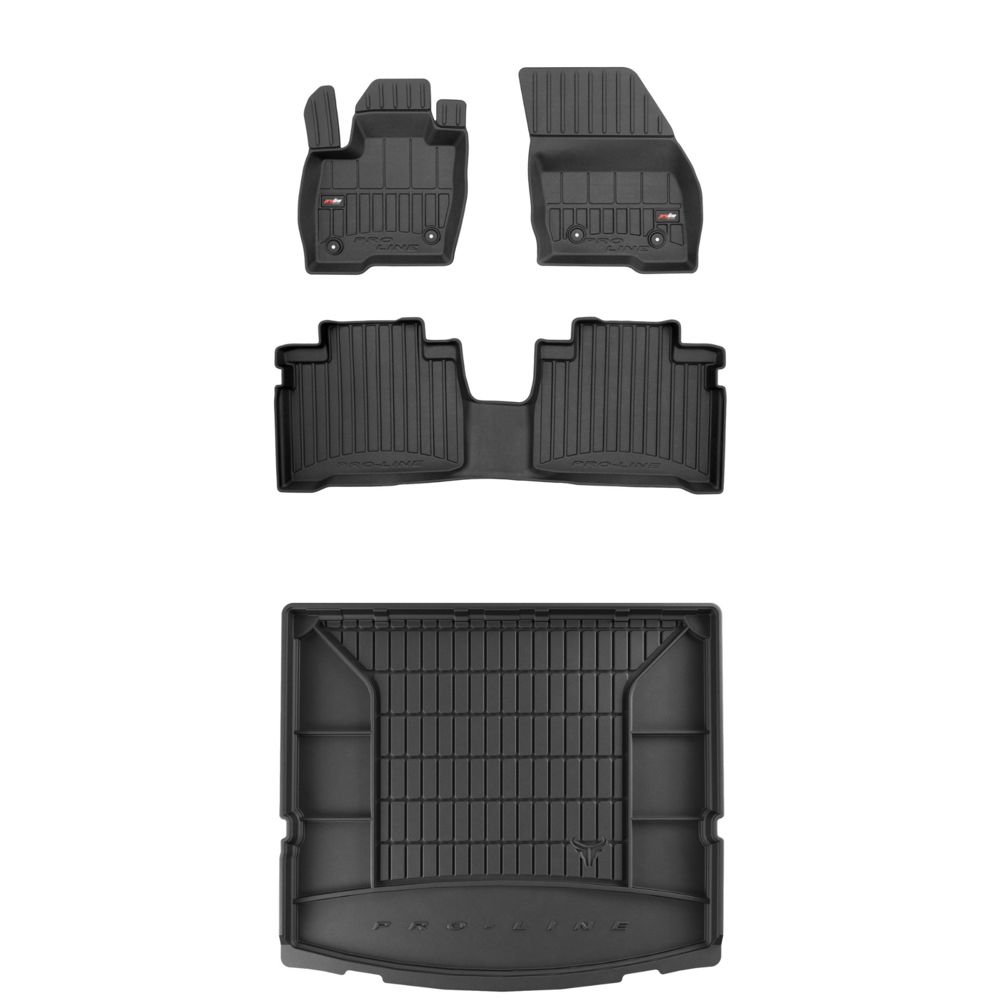 Zestaw dywaników samochodowych i maty do bagażnika ProLine dopasowany do Ford S-Max II (2014-2023, minivan, 7 miejsc, złożony 3. rząd siedzeń, dystans między stoperami 31cm, bez opcjonalnej półki bagażnika)