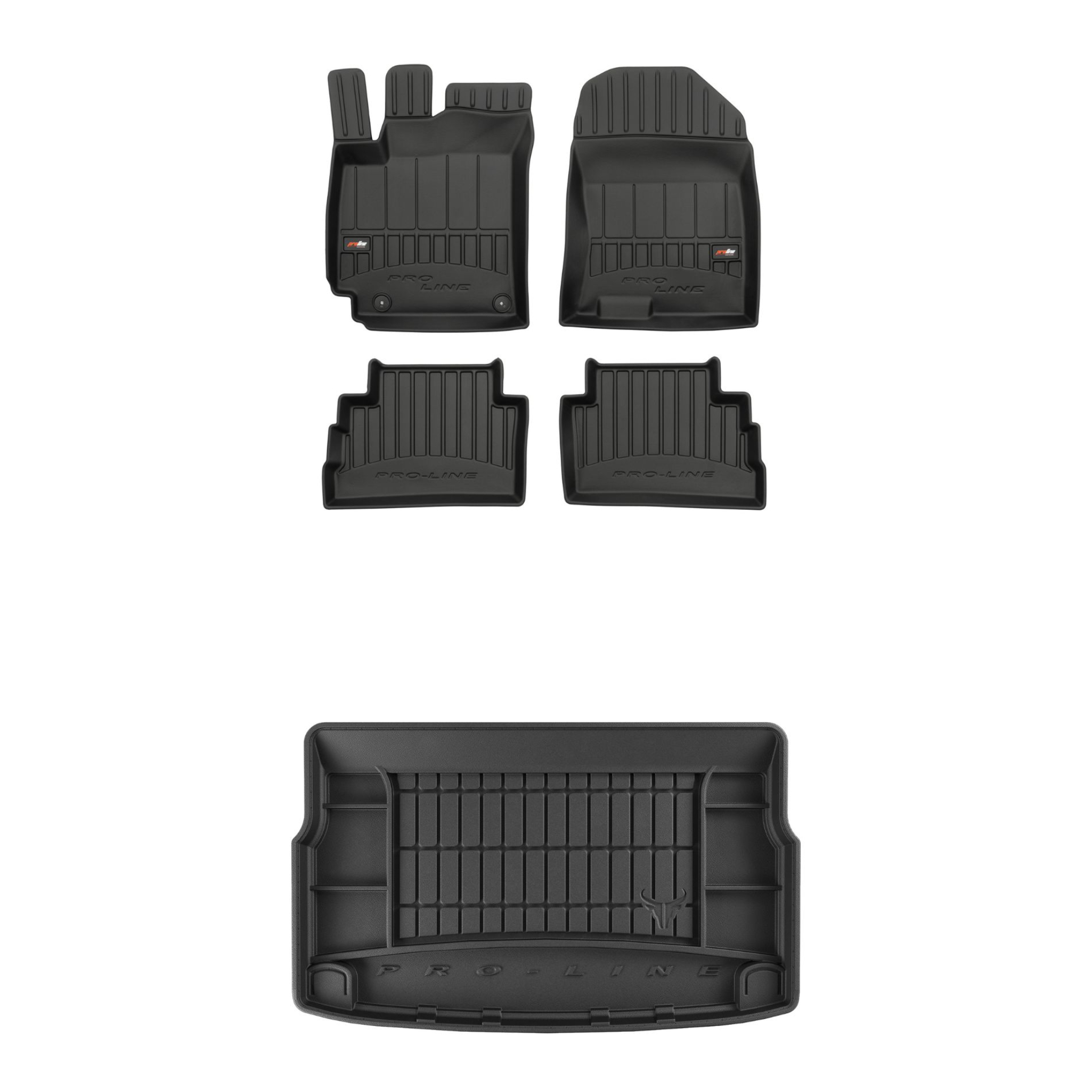 Zestaw dywaników samochodowych i maty do bagażnika ProLine dopasowany do Hyundai Kona I (2017-2023, crossover, dolna podłoga bagażnika, bez organizera bagażnika, bez koła zapasowego)