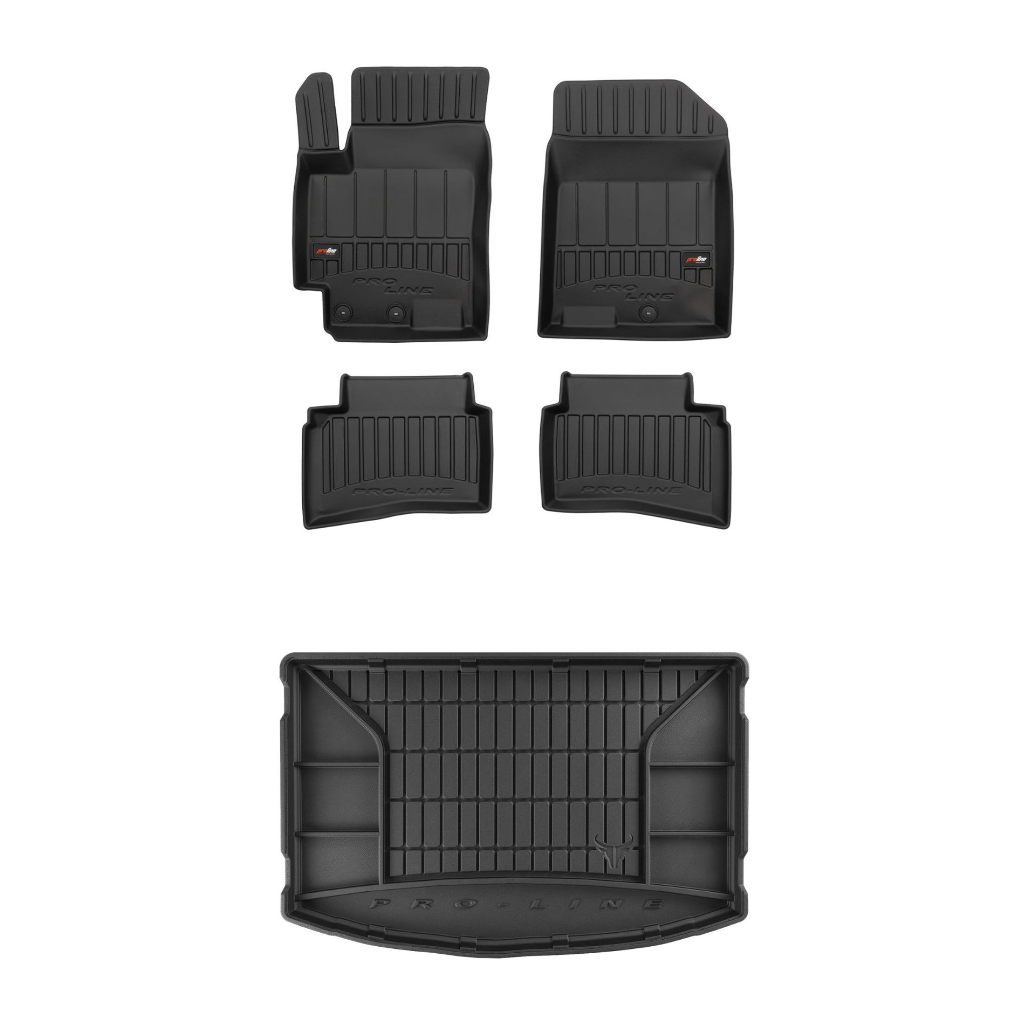 Zestaw dywaników samochodowych i maty do bagażnika ProLine dopasowany do Kia Rio IV (2016-2020, hatchback, przed liftem, bez regulowanej wysokości podłogi bagażnika)