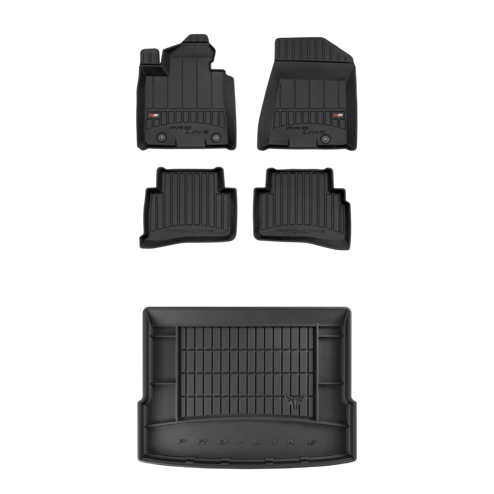 Zestaw dywaników samochodowych i maty do bagażnika ProLine dopasowany do Kia Sportage IV (2015-2018, suv, przed liftem, z napinaczem pasa za siedzeniem kierowcy, dolna podłoga bagażnika)