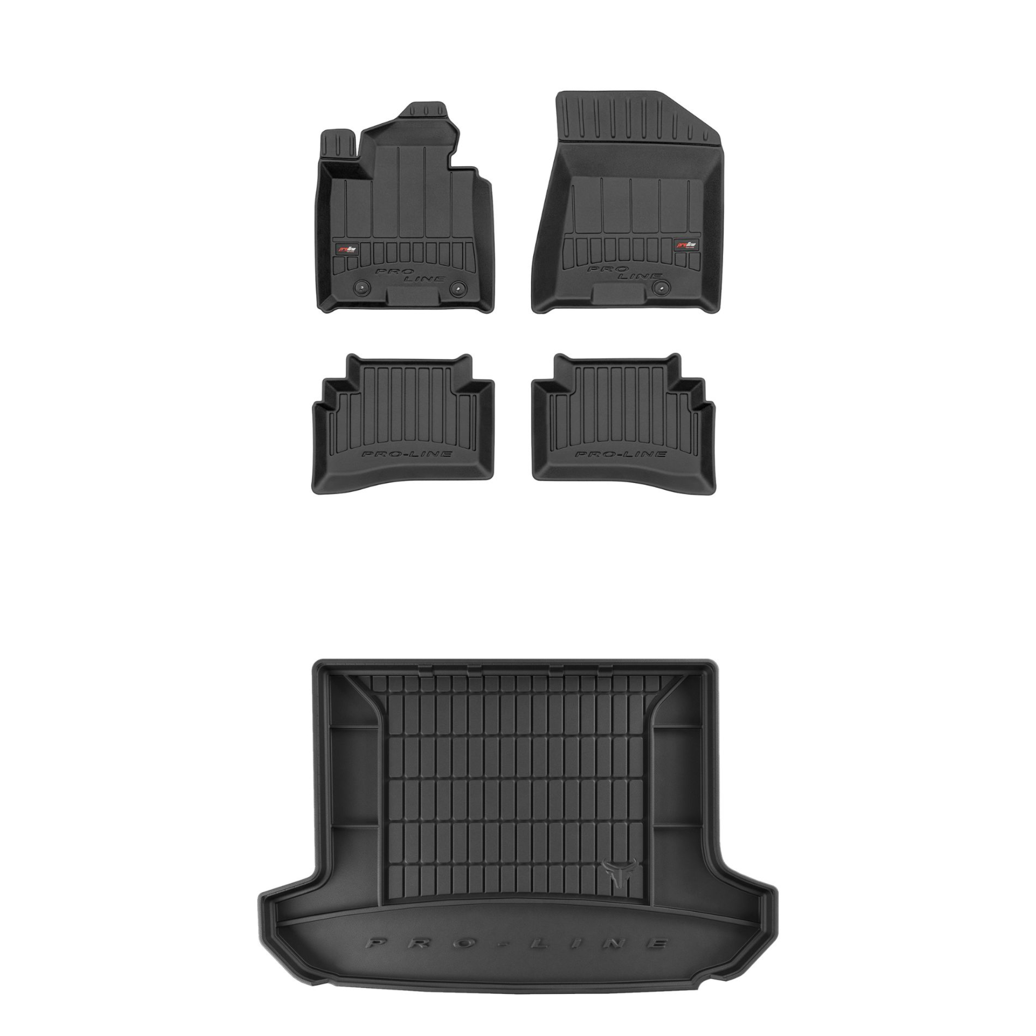 Zestaw dywaników samochodowych i maty do bagażnika ProLine dopasowany do Kia Sportage IV (2015-2018, suv, przed liftem, bez napinacza pasa za siedzeniem kierowcy, górna podłoga bagażnika)