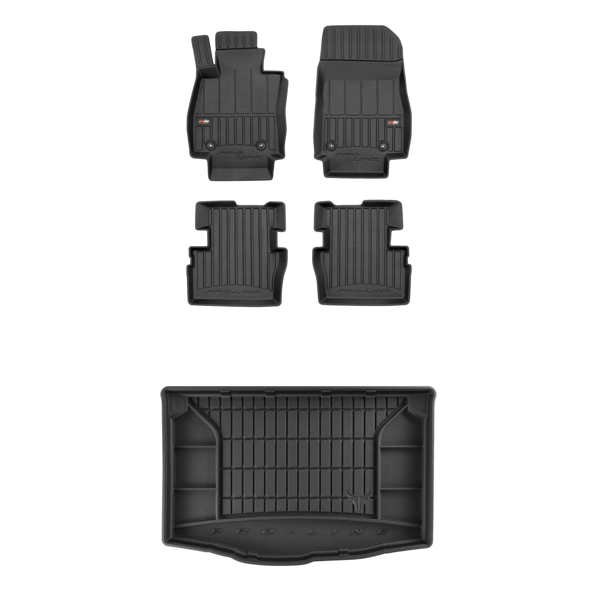 Zestaw dywaników samochodowych i maty do bagażnika ProLine dopasowany do Mazda 2 III (od 2014, hatchback, bez regulowanej wysokości podłogi bagażnika)