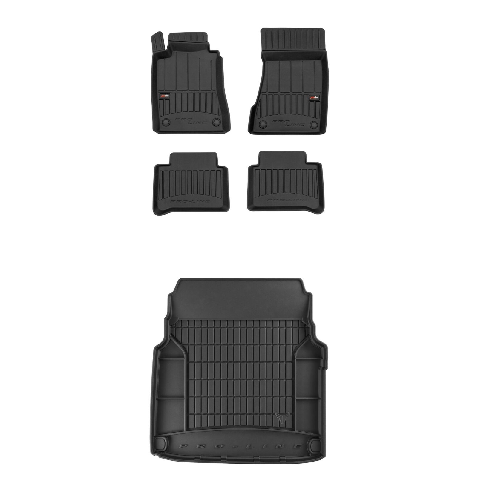 Zestaw dywaników samochodowych i maty do bagażnika ProLine dopasowany do Mercedes-Benz Klasa E W211 (2006-2009, z wyłączeniem 4Matic, sedan, po lifcie, bez regulowanej wysokości podłogi bagażnika, bez wnęk bocznych, z nawigacją)