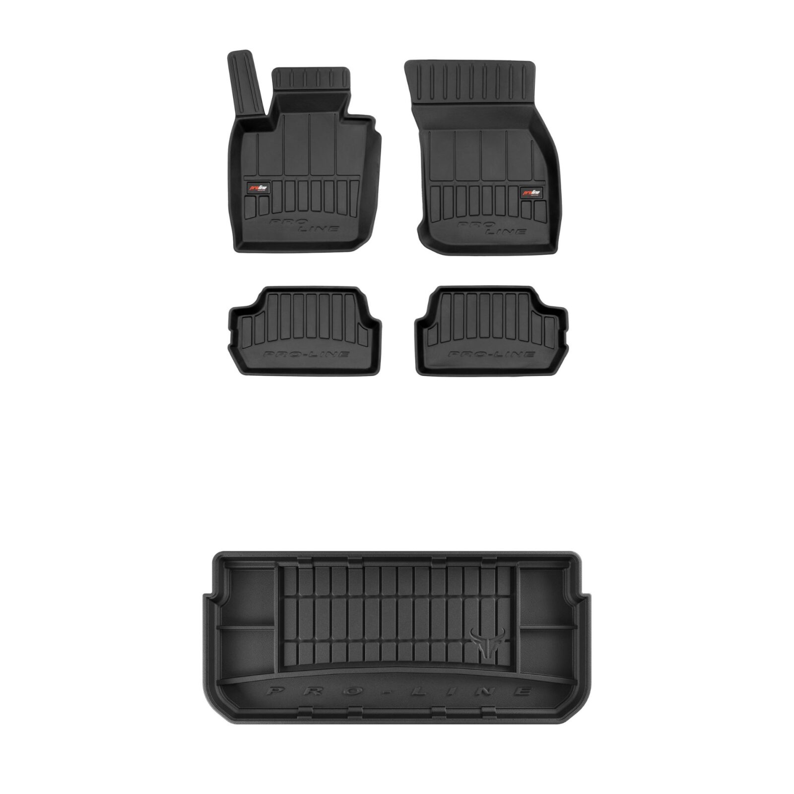 Zestaw dywaników samochodowych i maty do bagażnika ProLine dopasowany do Mini Cooper III (od 2014, hatchback, 3 drzwi, automatyczna skrzynia biegów, środkowa podłoga bagażnika)