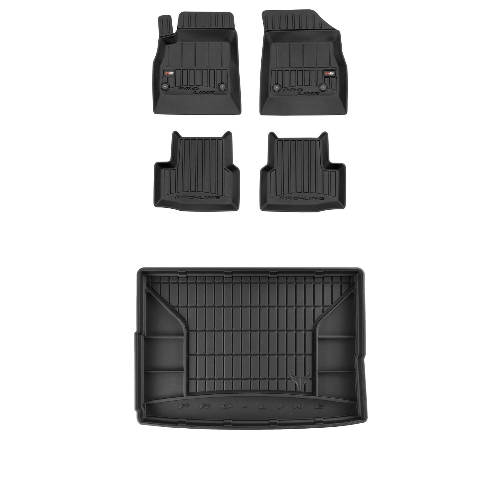Zestaw dywaników samochodowych i maty do bagażnika ProLine dopasowany do Opel Astra K (2015-2022, hatchback, bez regulowanej wysokości podłogi bagażnika, z z kołem zapasowym (pełny wymiar))
