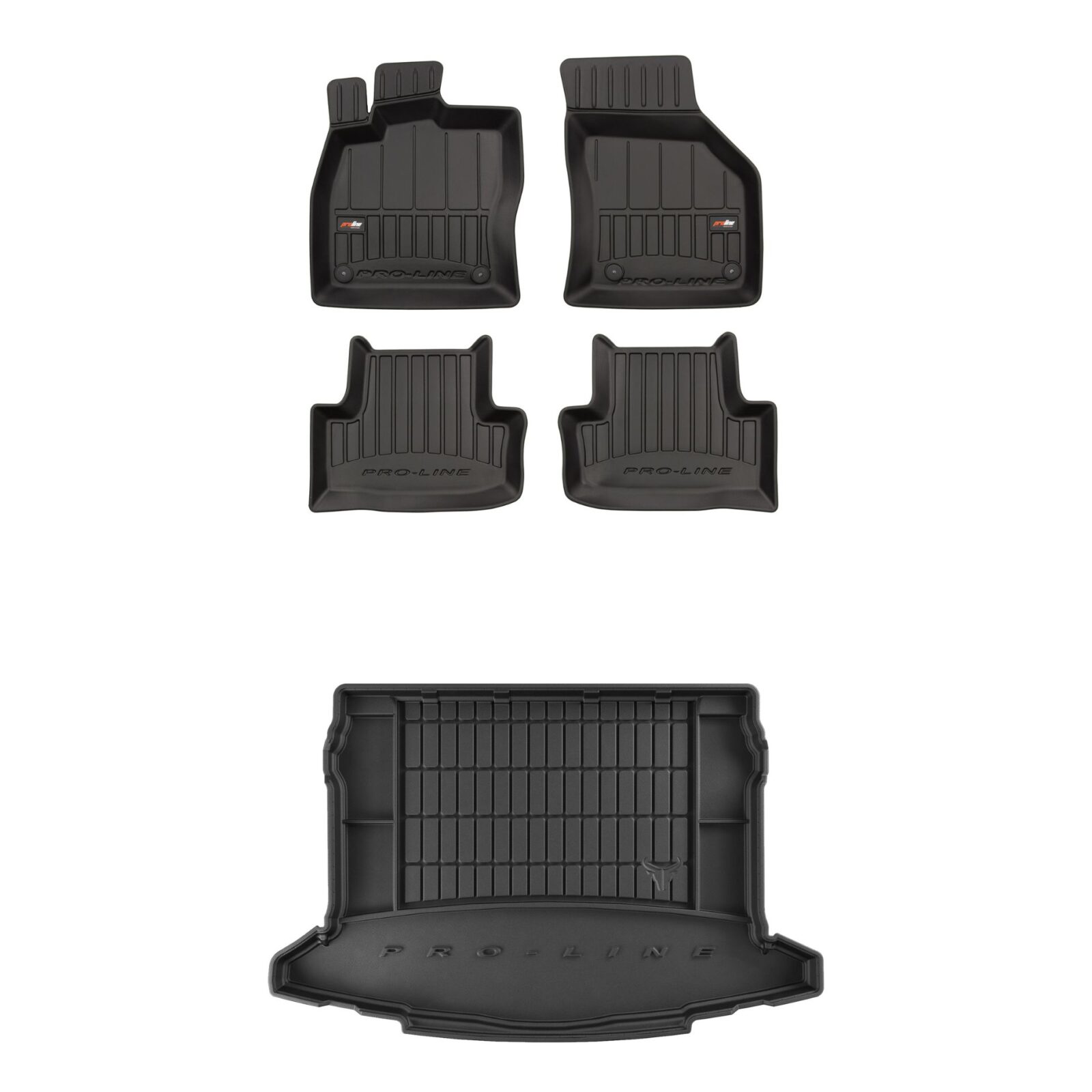 Zestaw dywaników samochodowych i maty do bagażnika ProLine dopasowany do Skoda Karoq (od 2017, suv, pasuje do modeli z wyjmowanymi siedzeniami, dolna podłoga bagażnika, z bocznymi wnękami)
