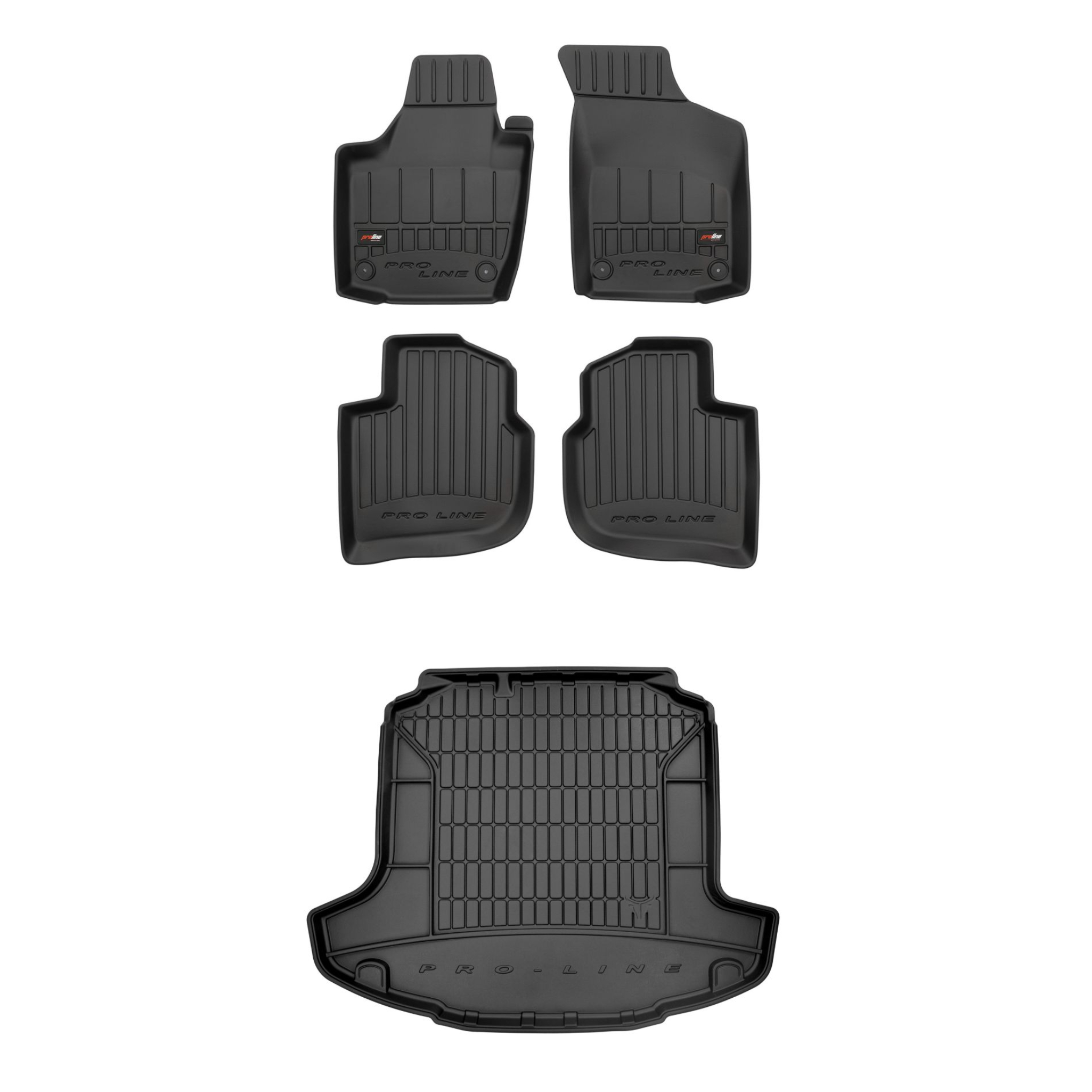 Zestaw dywaników samochodowych i maty do bagażnika ProLine dopasowany do Skoda Rapid (2012-2019, sedan, bez regulowanej wysokości podłogi bagażnika, z bocznymi wnękami)