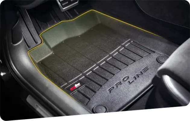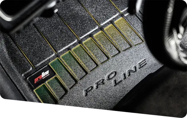 Proline – dywaniki klasy premium wykonane z wysokiej jakości tworzywa TPE, dające idealne dopasowanie dzięki technologii skanowania 3D i wysokim krawędziom do 7 cm. Skutecznie chronią wnętrze przed wodą i brudem, jednocześnie podkreślając elegancki charakter auta dzięki satynowemu wykończeniu.