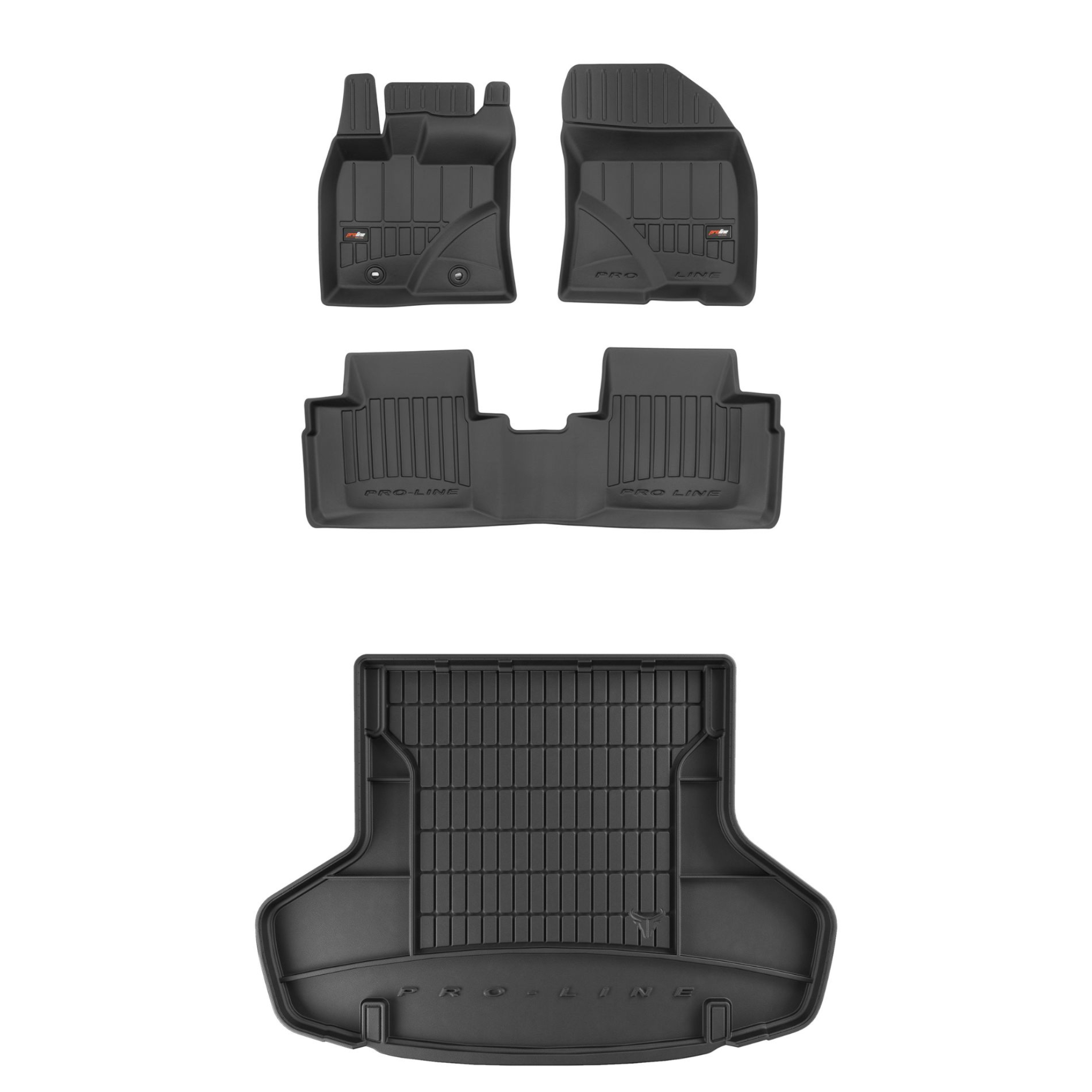 Zestaw dywaników samochodowych i maty do bagażnika ProLine dopasowany do Toyota Avensis III (2009-2015, kombi, przed liftem, bez regulowanej wysokości podłogi bagażnika, z bocznymi wnękami)