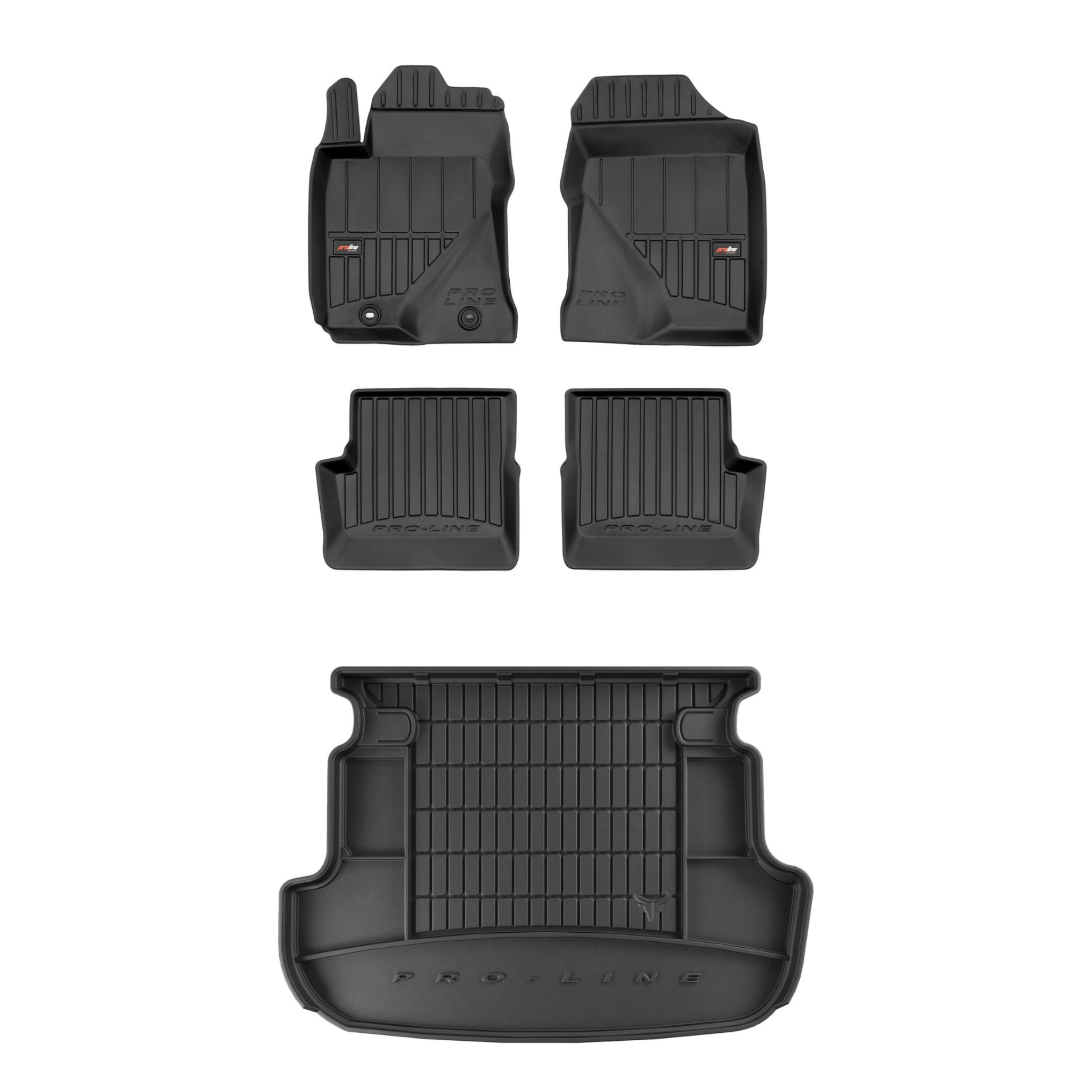 Zestaw dywaników samochodowych i maty do bagażnika ProLine dopasowany do Toyota Corolla IX (2001-2007, z otworami wentylacyjnymi ogrzewania pod siedzeniami w pierwszym rzędzie, kombi, bez regulowanej wysokości podłogi bagażnika)