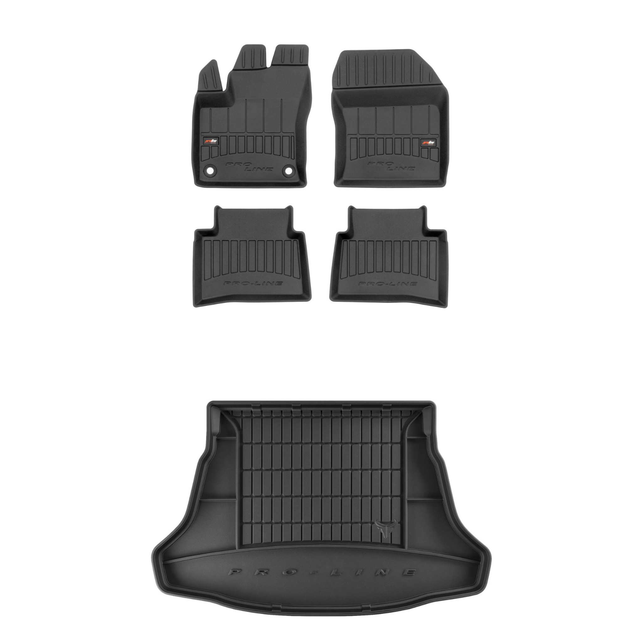 Zestaw dywaników samochodowych i maty do bagażnika ProLine dopasowany do Toyota Prius IV (2015-2023, liftback, dystans między stoperami 37cm, bez regulowanej wysokości podłogi bagażnika)