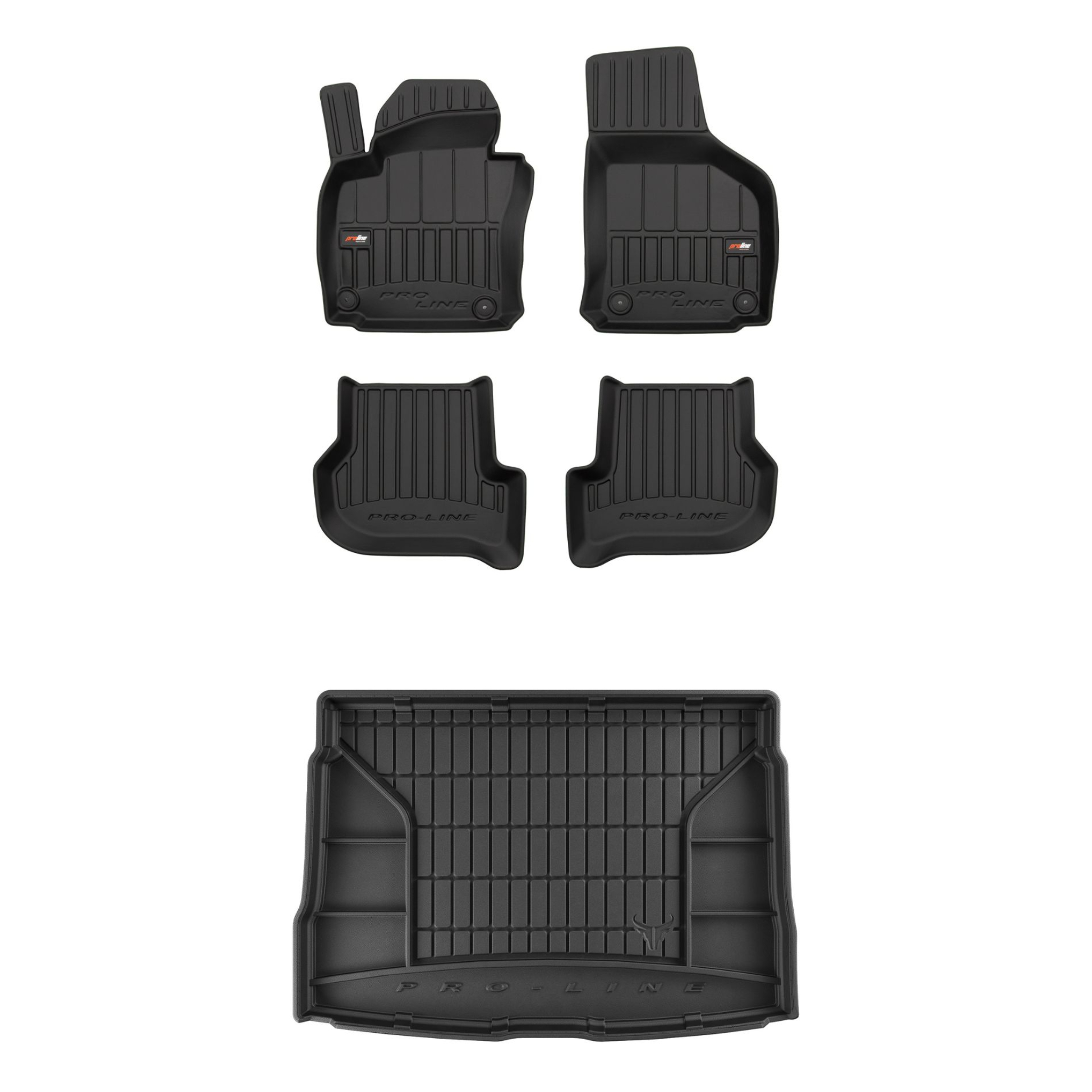 Zestaw dywaników samochodowych i maty do bagażnika ProLine dopasowany do Volkswagen Golf VI (2008-2016, hatchback, 5 drzwi, z kołem zapasowym (pełnym rozmiar), bez regulowanej wysokości podłogi bagażnika)