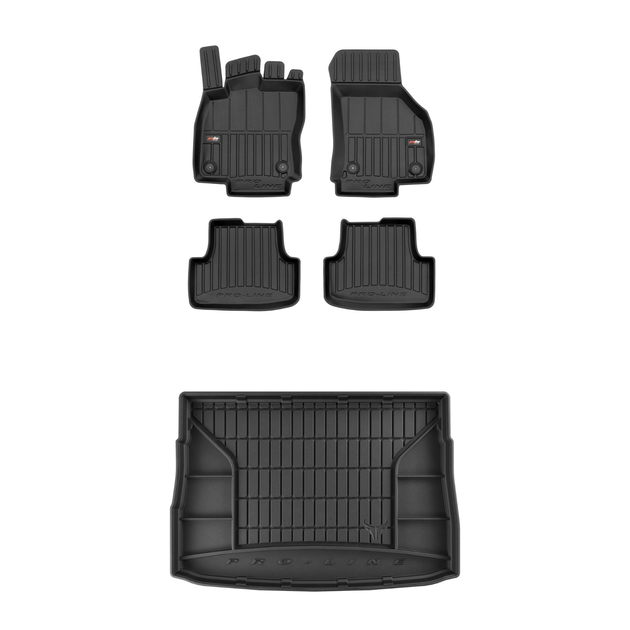 Zestaw dywaników samochodowych i maty do bagażnika ProLine dopasowany do Volkswagen Golf VIII (od 2019, z wyłączeniem mild hybrid, z wyłączeniem kombi, hatchback, górna podłoga bagażnika, z bocznymi wnękami, z kołem zapasowym)