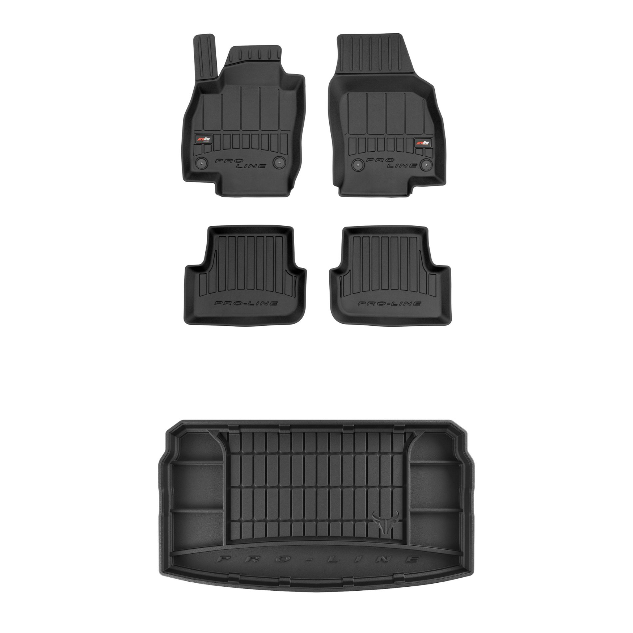 Zestaw dywaników samochodowych i maty do bagażnika ProLine dopasowany do Volkswagen Polo VI (od 2017, hatchback, dolna podłoga bagażnika, regulowana wysokość podłogi bagażnika)